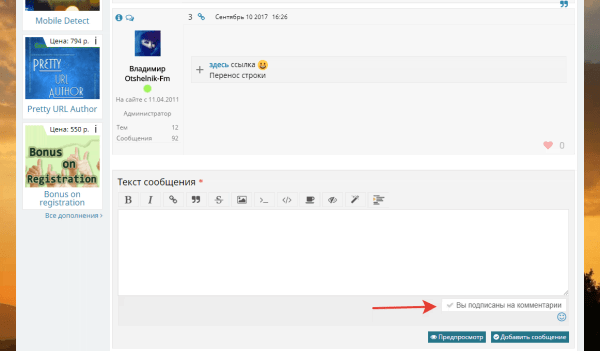 Вы также можете подписаться на комментарии к выбранной теме форума. Кнопка доступна так же внизу формы комментирования