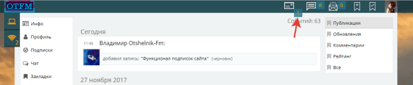Если запись, или форум, на которые вы подписаны, получили новый комментарий - то в реколлбаре (верхняя часть сайта) вы увидите уведомление: