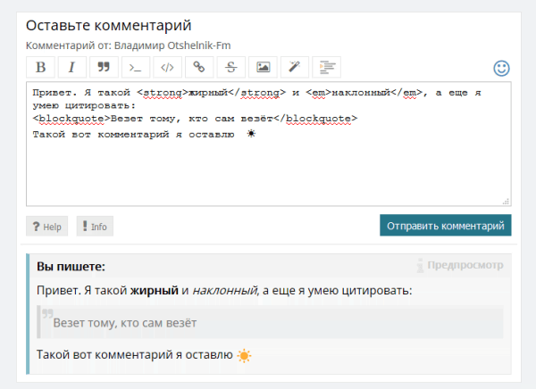 - Перед отправкой комментария вы можете его увидеть в предпросмотре - блок внизу формы.