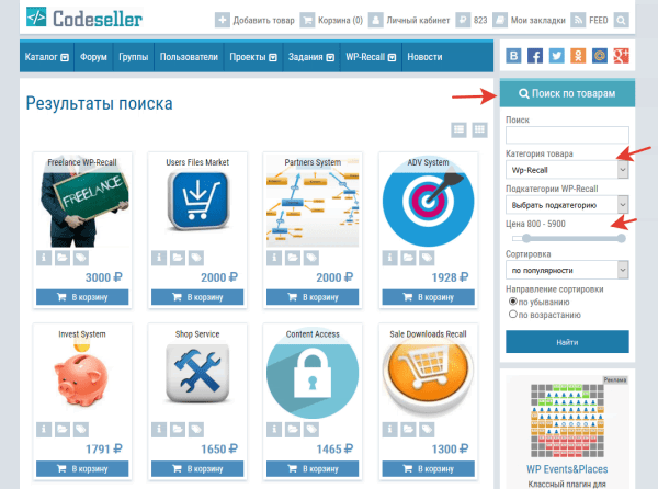 1. Установить дополнение (для вордпресс плагина WP-Recall) Seller on CodeSeller