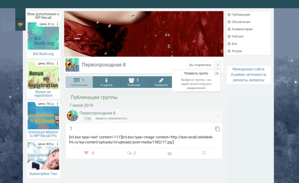 Идея прижилась и вот я вещаю вам о своих делах в мире WP-Recall.